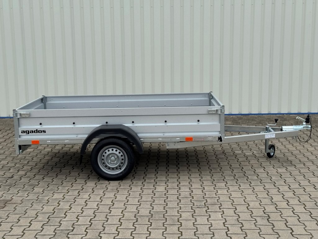Jednonápravový nebrzděný přívěs vybavený předním i zadním otevíracím čelem.