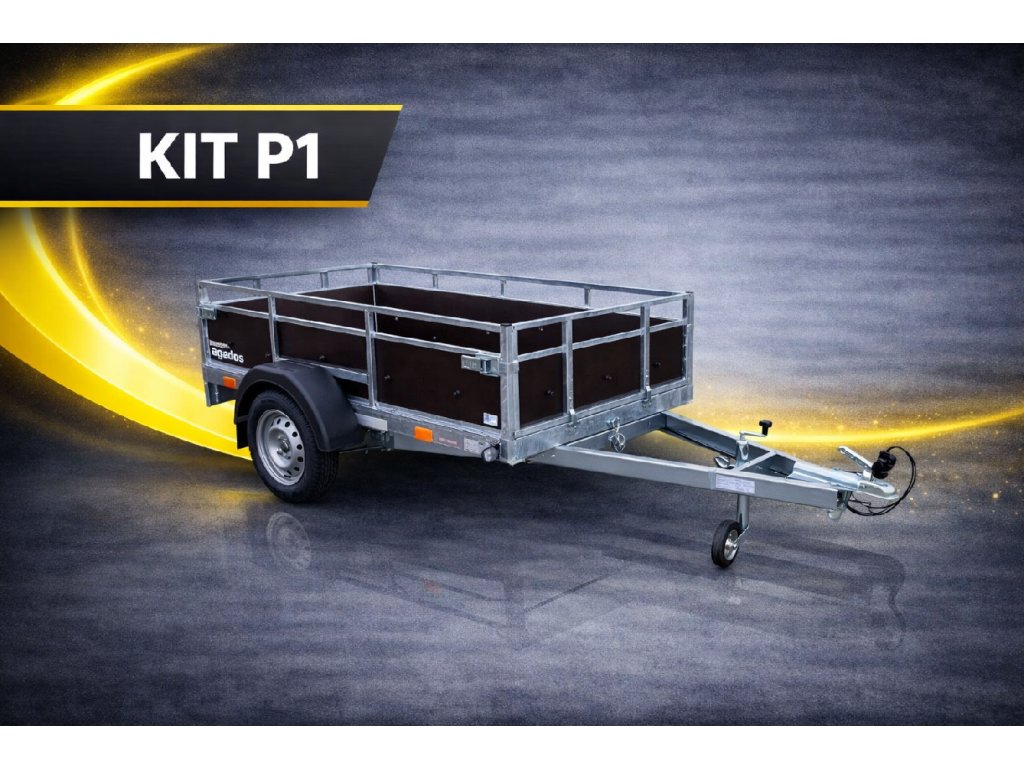Přívěs AGA KIT P1 představuje kompromis mezi cenou a robustním provedením. Jedná se o nebrzděný přívěs s odolným celo-svařovaným rámem se čtyřmi příčkami pod podlahou. Podlaha samotná je pak z voděodolné překližky o síle 9 mm. Základní výbava zahrnuje: