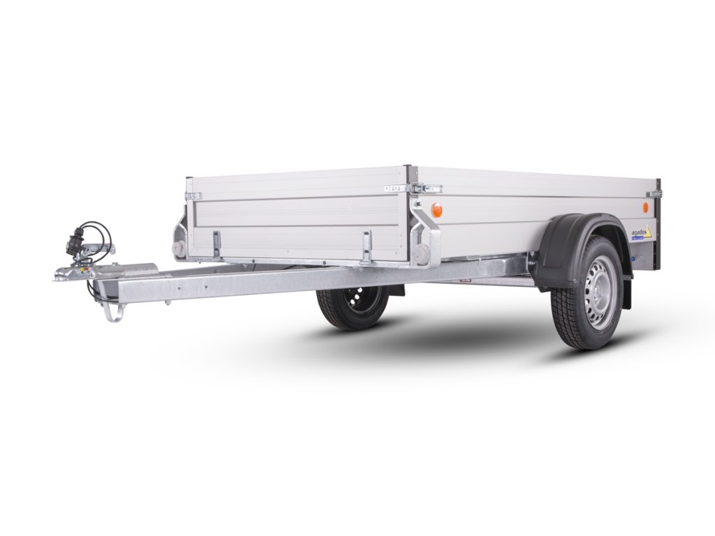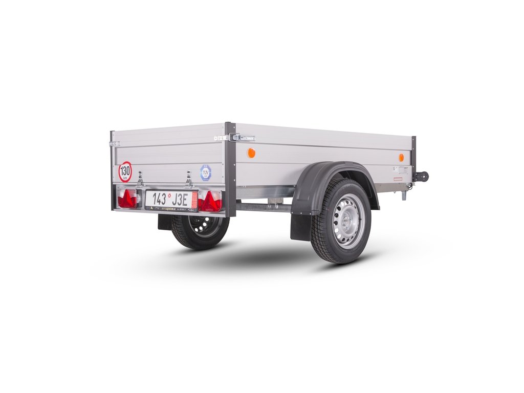 Jednonápravový, nebrzděný valníkový přívěs s koly vedle ložné plochy. Přívěs má hliníkové bočnice o výšce 350 mm a podlahu z voděodolné překližky. Zadní čelo přívěsu je sklopné. V základní ceně je zahrnuto: Pozor: obrázek je pouze ilustrační pro celou typovou řadu a nevyobrazuje konkrétní variantu přívěsu. Věnujte prosím pozornost popisu a parametrům. Reálné fotografie průběžně doplňujeme