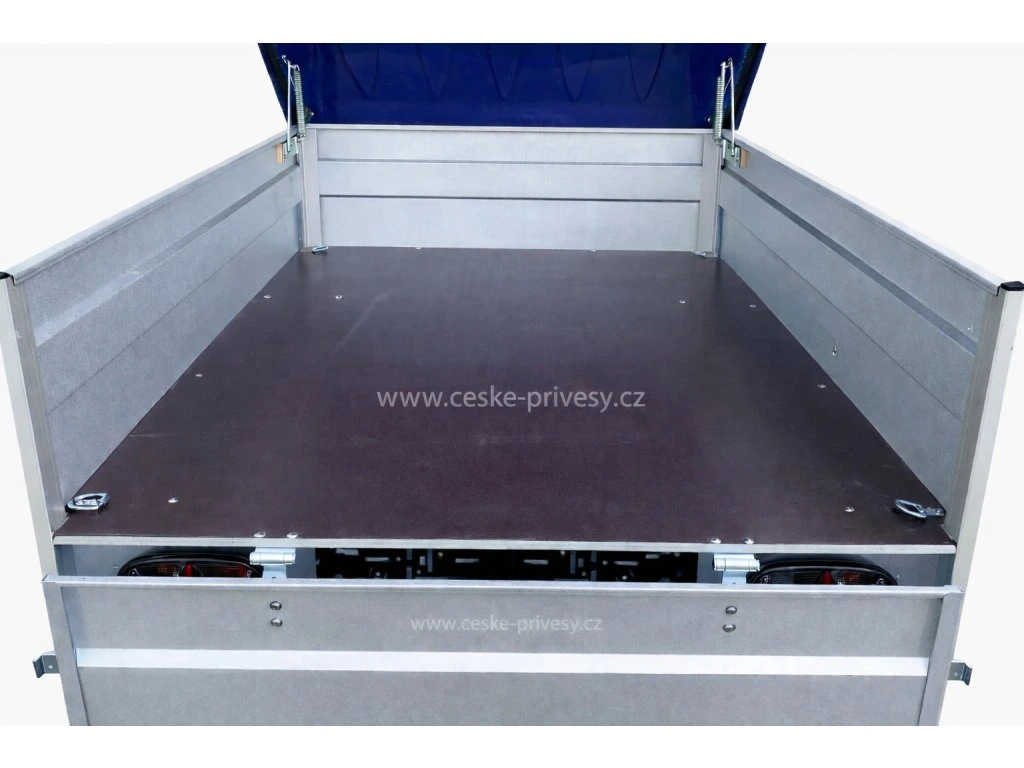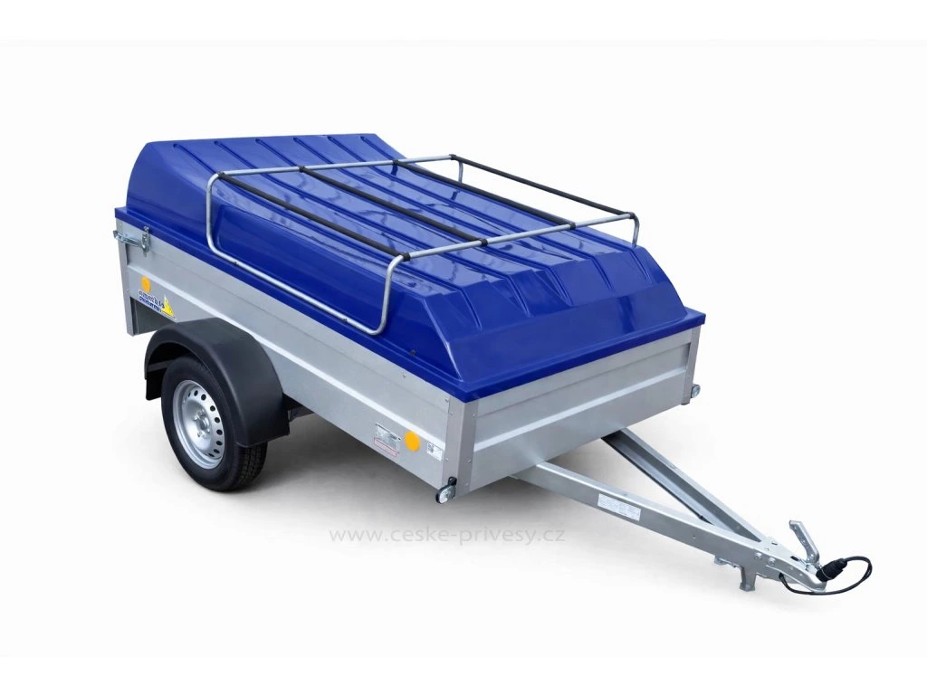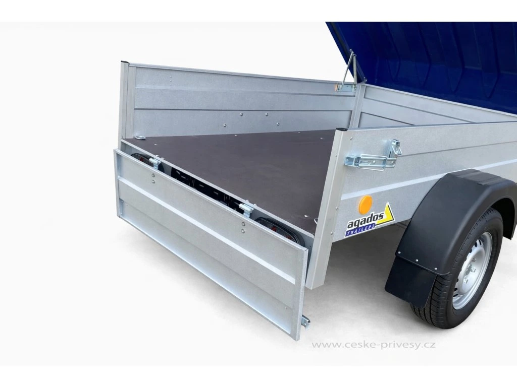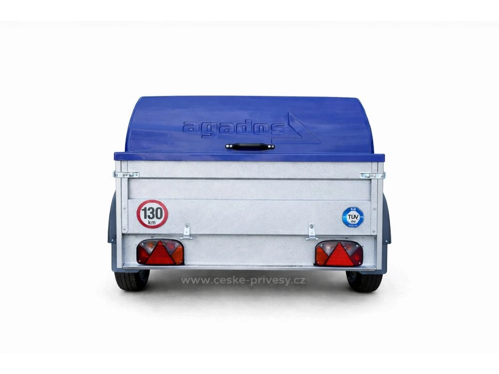 Přívěs Handy-7 je lehký nebrzděný přívěs s celkovou hmotností 750 kg a ložnou plochou 2050x1250x350 mm. Charakteristické je provedení s "V" ojí, plechové bočnice s Al-Zn povrchovou úpravou, 13" kola, 7pólová elektroinstalace, podlaha je vyrobená z voděodolné protiskluzové překližky o síle 9 mm. Rohové sloupky umožňují přívěs Handy-3 vybavit například nástavbou bočnic nebo plachtou s konstrukcí o podchozí (ložné) výšce až 1,53 m. Porovnání přívěsů Agados HANDY-27 a Agados HANDY-7: V této variantě cena zahrnuje příplatkovou výbavu: Pozor: obrázek je pouze ilustrační pro celou typovou řadu a nevyobrazuje konkrétní variantu přívěsu. Věnujte prosím pozornost popisu a parametrům. Reálné fotografie průběžně doplňujeme