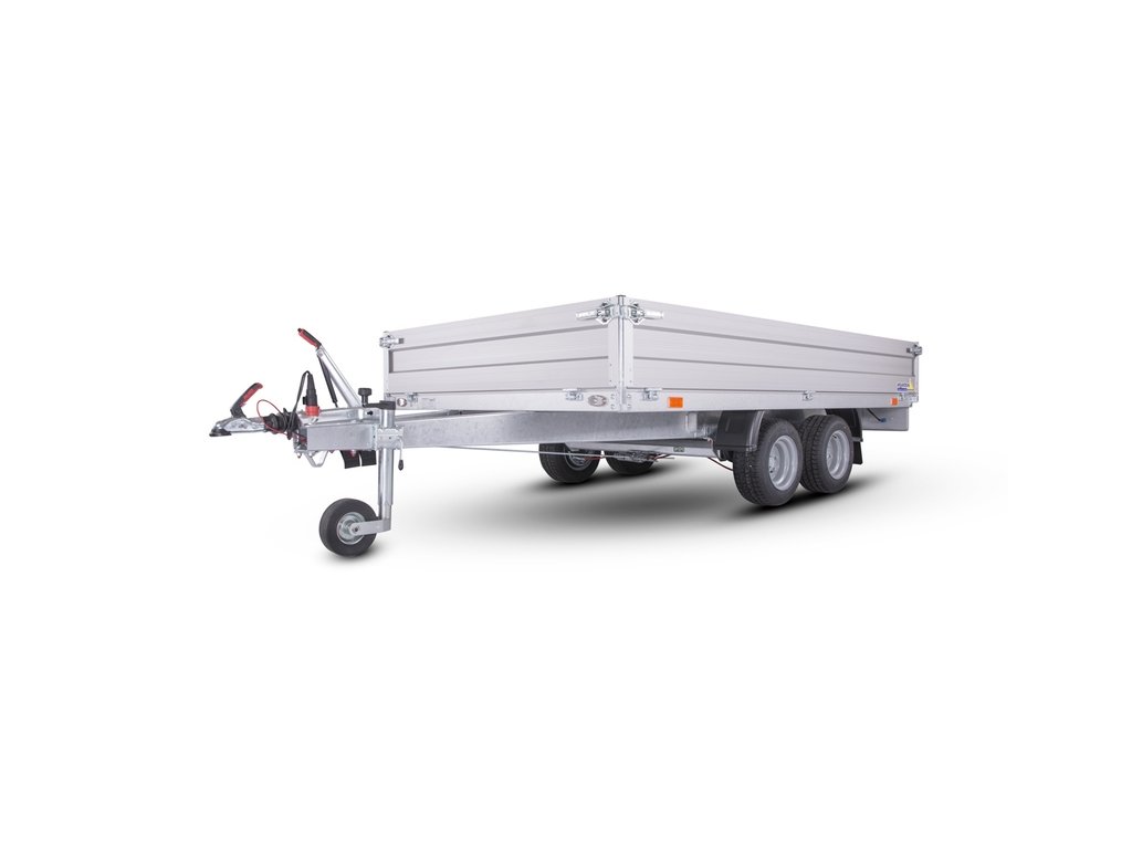 Odolný brzděný přívěs se svařovaným rámem s výztuhami pod podlahou a hliníkovými bočnicemi. Ve standardní výbavě je zahrnuto: Pozor: obrázek je pouze ilustrační pro celou typovou řadu a nevyobrazuje konkrétní variantu přívěsu. Věnujte prosím pozornost popisu a parametrům. Reálné fotografie průběžně doplňujeme