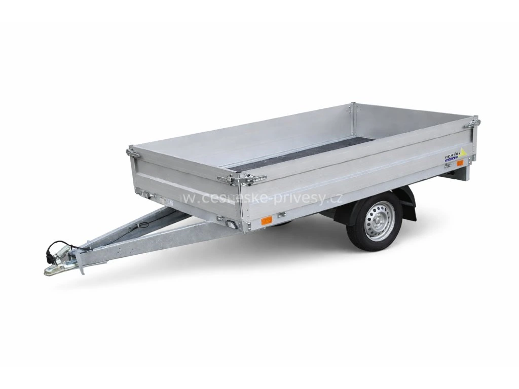 Odolný nebrzděný přívěs se svařovaným rámem s výztuhami pod podlahou a hliníkovými bočnicemi. Ve standardní výbavě je zahrnuto: