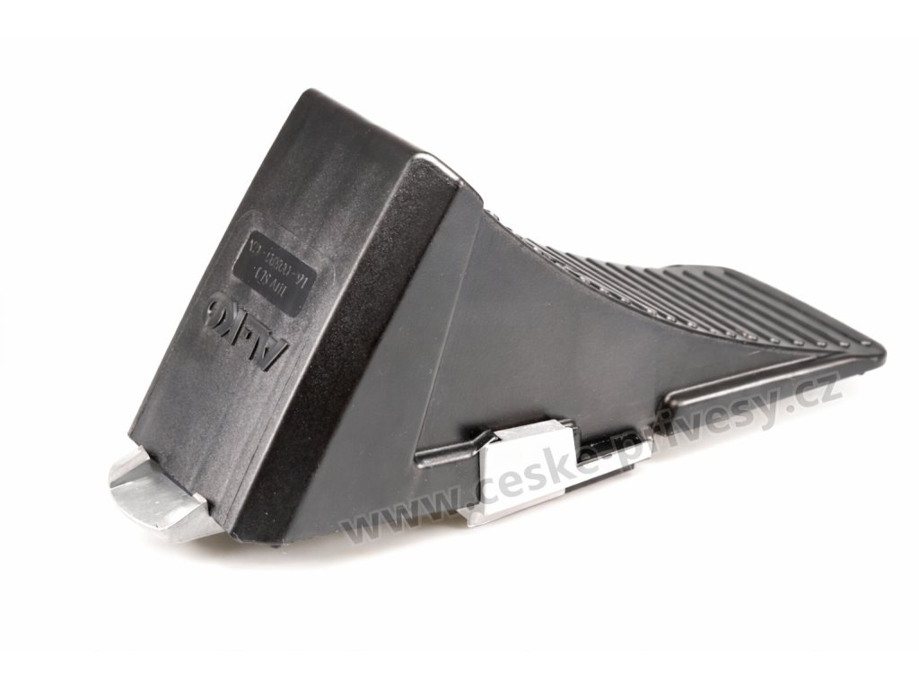 Klín je vyroben z odolného plastu, který je lehký, pevný a odolný vůči vlhkosti, nečistotám i běžnému mechanickému namáhání. Tvar klínu zajišťuje spolehlivé opření o pneumatiku a stabilní fixaci kola na rovném i mírně svažitém povrchu.