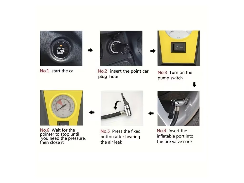 Balení obsahuje: 4x Nástavec, Kompresor, kabel k zásuvce nabíjení auto-zapalovače.
