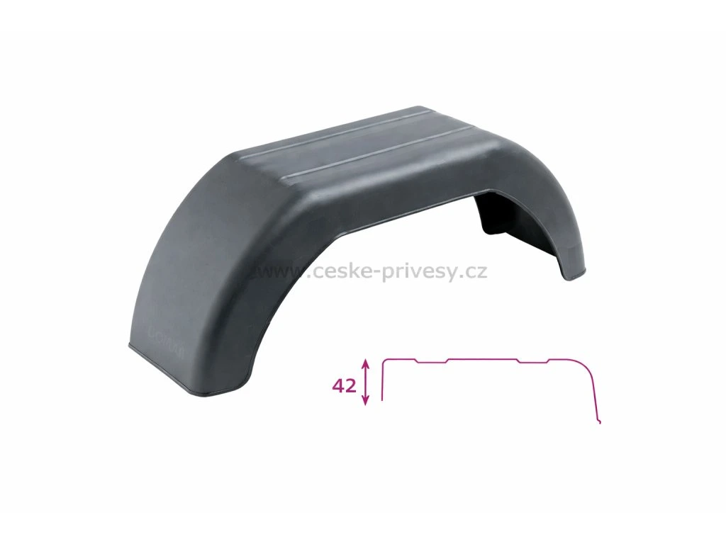 Kvalitní polypropylénový blatník italské výroby, vhodný pro 13'' kola, vyniká zejména svým pevným a přitom pružným materiálem. Horní rovná plocha blatníku usnadňuje usazení např. těsně pod podlahu přívěsu. Díky velmi pěknému povrchu je blatník vhodný i pro montáž na přívěsy s koly vedle ložné plochy, kde vkusně dotvoří celkový vzhled přívěsu.