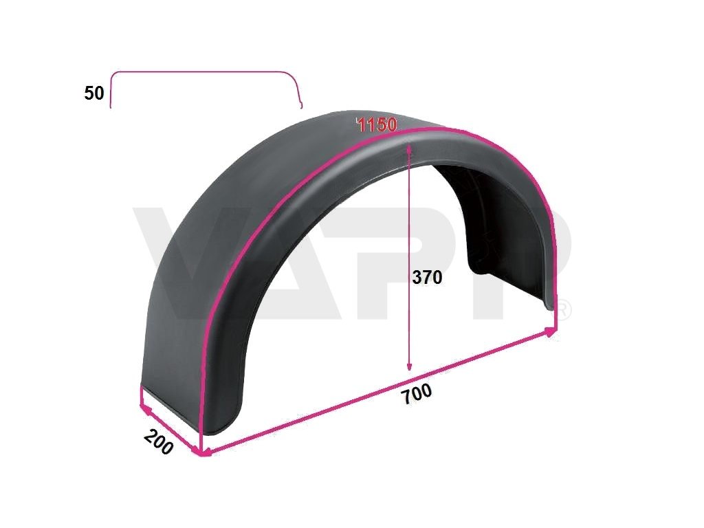 Plastový blatník DOMAR pro kola 13" (šířka 200 mm) je kvalitní ochranný díl přívěsu, navržený pro efektivní omezení odstřiku vody, bláta a provozních nečistot během jízdy. Oblý tvar blatníku zajišťuje plynulé zakrytí kola a přispívá k ochraně konstrukce přívěsu, tažného vozidla i okolí.