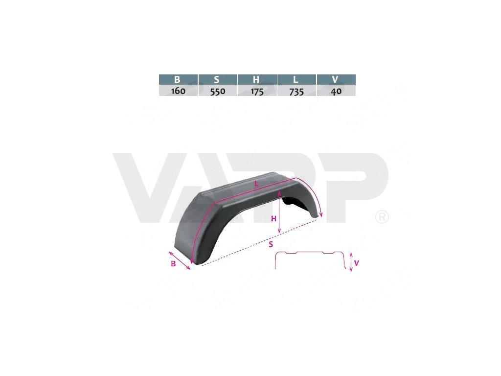 Plastový blatník DOMAR pro kola 8" (šířka 160 mm) je praktický ochranný prvek přívěsu, navržený k omezení odstřiku vody, bláta a nečistot během jízdy. Lomený tvar blatníku zajišťuje lepší krytí kola a efektivní ochranu konstrukce přívěsu, tažného vozidla i okolí.