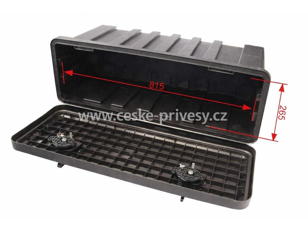 Tento úložný box na návěs je konstruován pro montáž na rám přívěsu, návěsu nebo užitkového vozidla, aniž by výrazně zvyšoval hmotnost soupravy. Pevné víko s bezpečným uzavíráním chrání uložený obsah před vodou, prachem a neoprávněným přístupem, což je zásadní pro bezpečný a efektivní provoz přívěsné techniky.