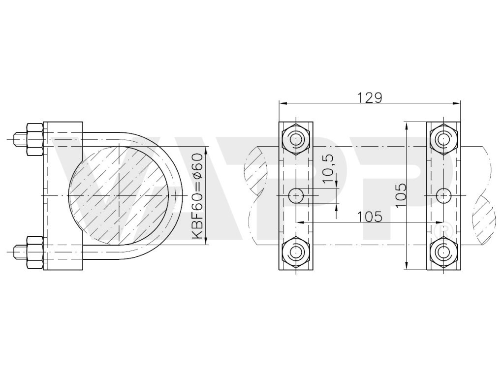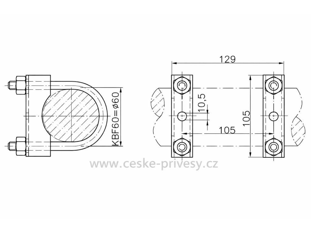 Držák KBF 60 (klema opěrného kolečka) je robustní upevňovací prvek pro přívěsy, určený pro montáž opěrného kolečka na oj průměru 60 mm. Konstrukce držáku umožňuje pevné sevření kolečka, čímž zajišťuje jeho stabilní polohu při parkování, odpojování i ruční manipulaci s přívěsem.