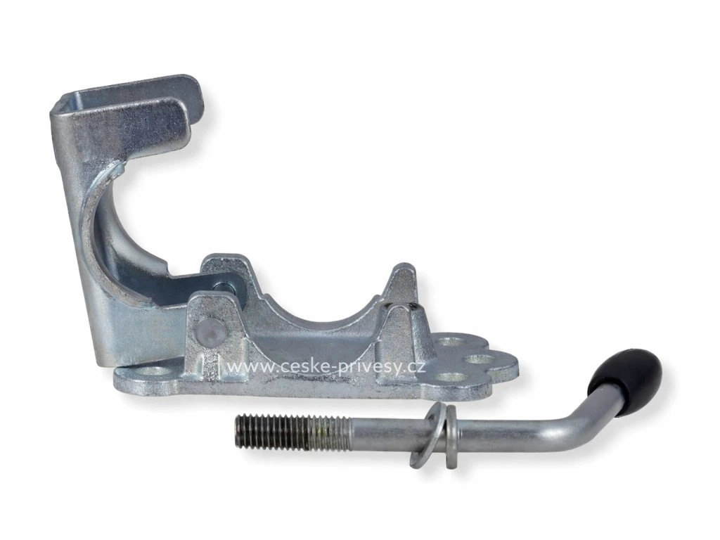 Konstrukce litinového držáku opěrného kolečka umožňuje pevné sevření kolečka průměru 48 mm, čímž je zajištěna jeho stabilní poloha bez nežádoucího pohybu. Materiál je odolný vůči vibracím, mechanickému namáhání a běžným povětrnostním vlivům, což je zásadní pro spolehlivý provoz přívěsu v každodenním používání.