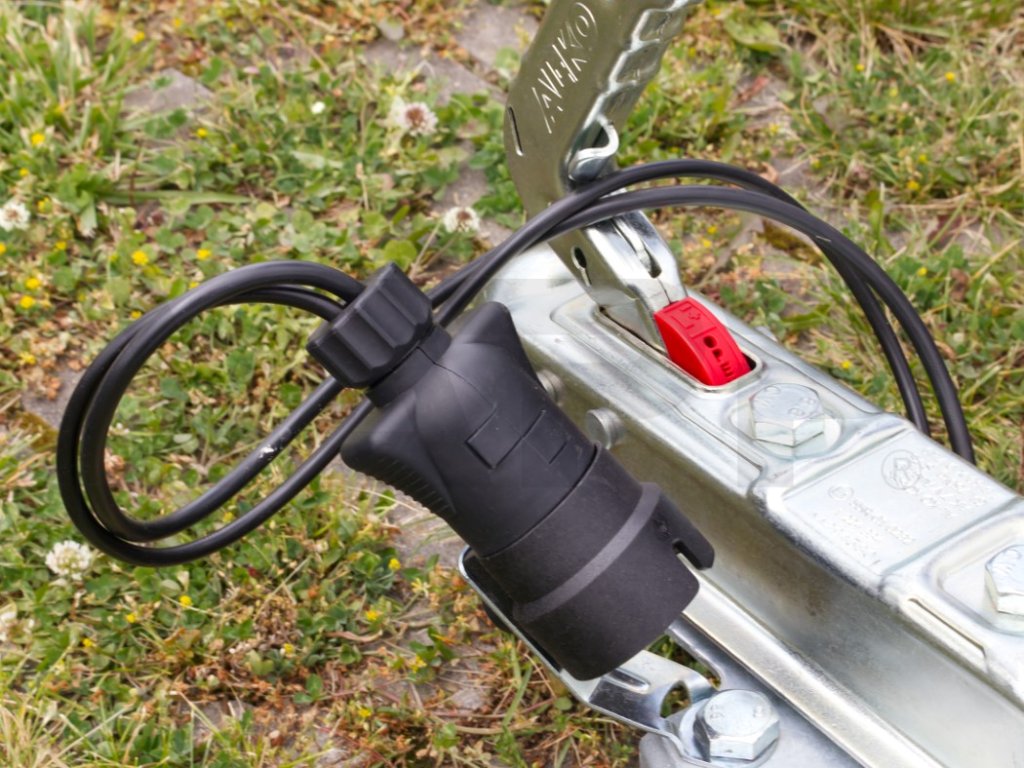 Univerzální držák 7 pólové i 13 pólové zástrčky elektroinstalace přívěsu od značky VAPP je jeden z nejlepších na trhu. Pevné ocelové pozinkované ramínko s otvorem pro šroub velikosti až M12 je osazené otočnou obroučkou z houževnatého plastu. Obroučka má na jedné straně průměr menší pro vložení sedmipólové zástrčky a na druhé straně větší průměr pro zasunutí třináctipólové zástrčky. Při protáčení v raménku se aretuje vždy po otočení o 180 stupňů buď užším nebo širším koncem vzhůru. Držák je tak použitelný i pro sedmipólové zástrčky (např. Jokon) s širším osazením, které běžně neprojdou do neotočných univerzálních držáků přes jejich širší část pro 13 pólovou zástrčku. Některé tažné spojky jsou vybavené z výroby levným držákem v podobě plastové nebo drátěné obroučky přímo na madle tažné spojky. Nevýhodou těchto držáků je jejich umístění. Při ráznějším zapojení tažné spojky na tažnou kouli dojde k pohybu ovládacího madla s držákem zástrčky a k jeho zacvaknutí do přepravní polohy. Přitom obvykle zástrčka vyskočí z držáku umístěného na ovládacím madle spojky. Tuto nevýhodu řeší právě držáky zástrček upevněné na šroubu mimo ovládací madlo tažné spojky (např. pod hlavou šroubu pro upevnění nájezdové brzdy, základny tažné spojky a pod.). Ocelové ramínko otočného držáku VAPP lze v případě potřeby mírně přihnout tak, aby směr vkládání zástrčky co nejlépe vyhovoval potřebám uživatele. Dík velké variabilitě v podstatě neexistuje místo, kam by tento držák nebylo možné použít. Je také oblíbenou alternativou k poněkud méně praktickým držákům umístěným na ovládacím madle tažné spojky.