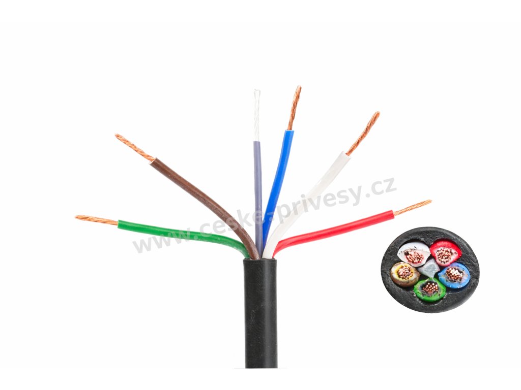 Kabel 5x0,75, hnědá/ bílá/ červená/ zelená/ modrá, metráž