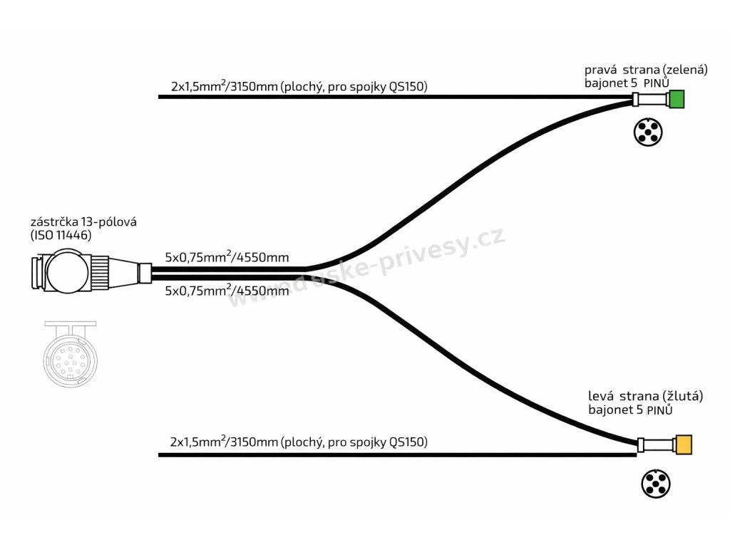 Kabeláž 4,55 m/ 13-pól. zástrčka, s předními vývody QS150, baj5