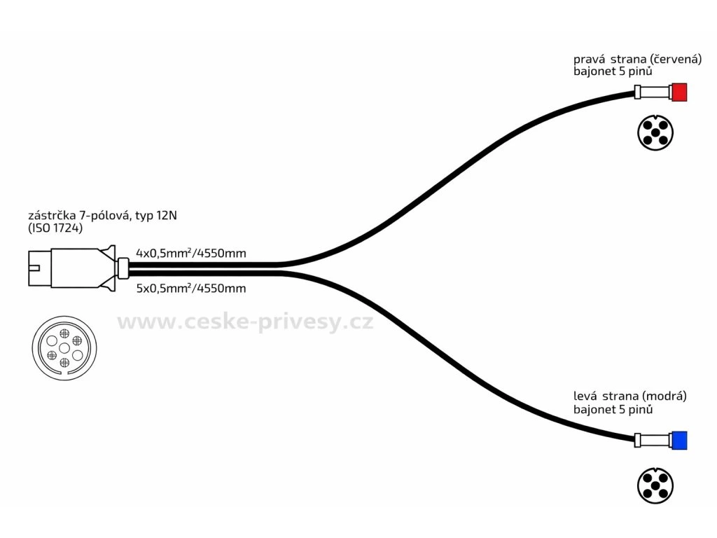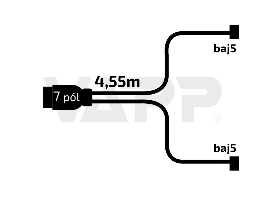 Kabeláž 4,55 m/7-pól. zástrčka, bez předních vývodů, baj5, Jokon