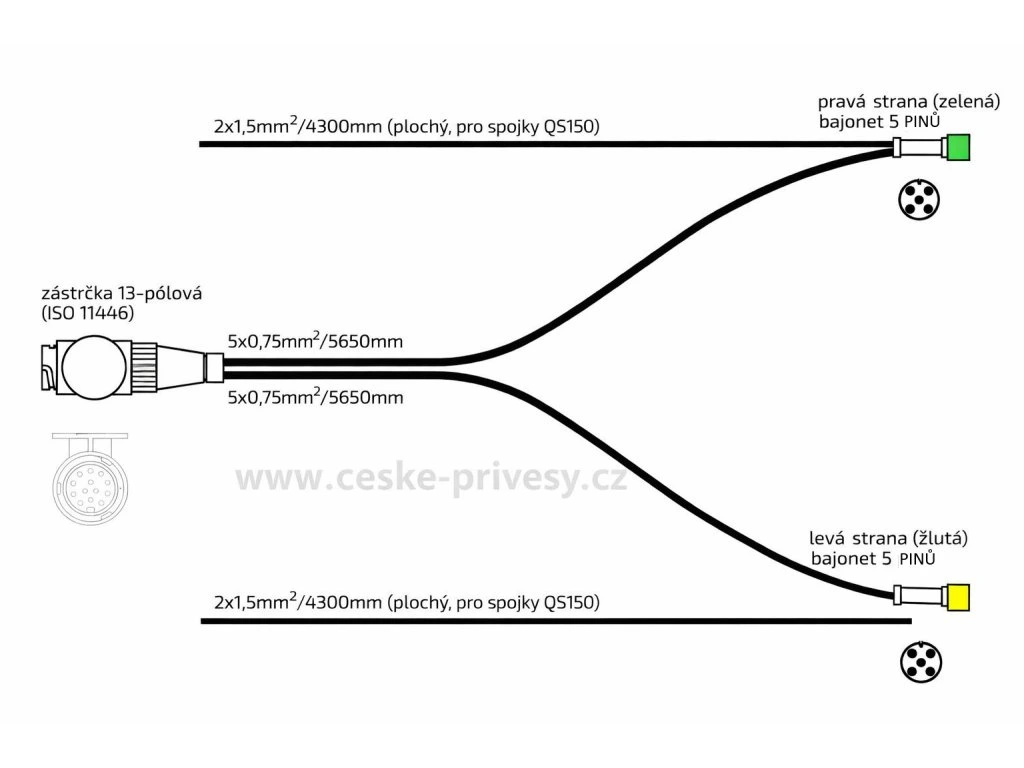 Kabeláž 5,65 m/13-pól. zástrčka, s předními vývody QS150, baj5,