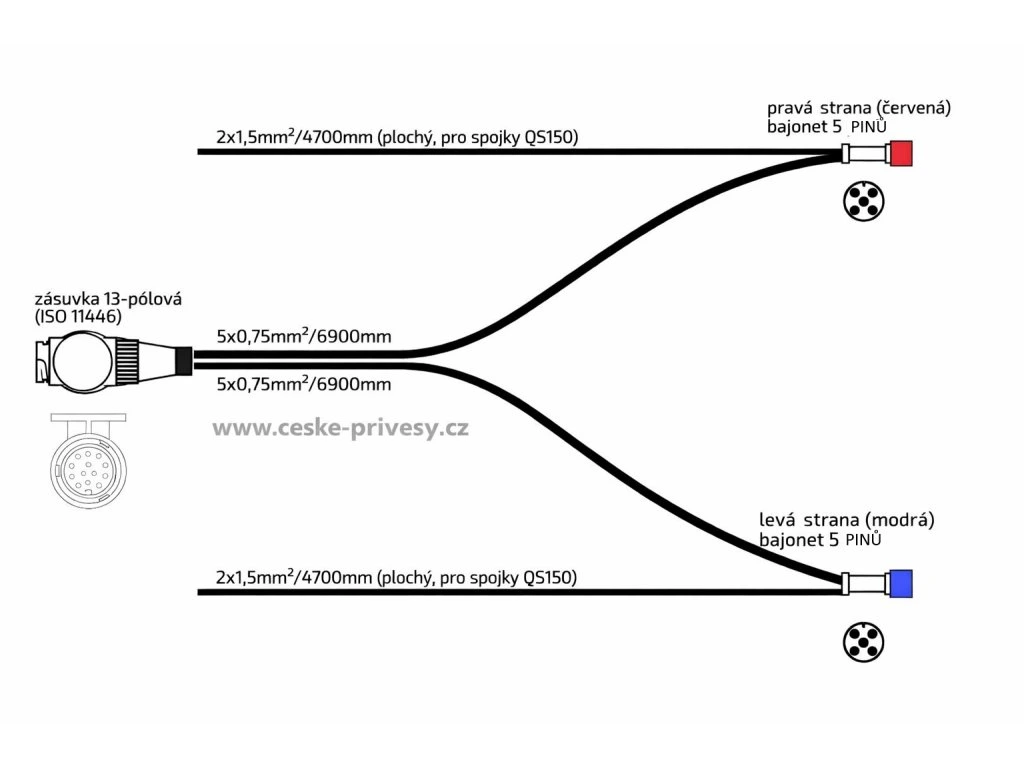 Kabeláž 6,9 m/13-pól. zástrčka, s předními vývody QS150, baj5, Jokon