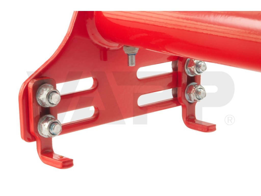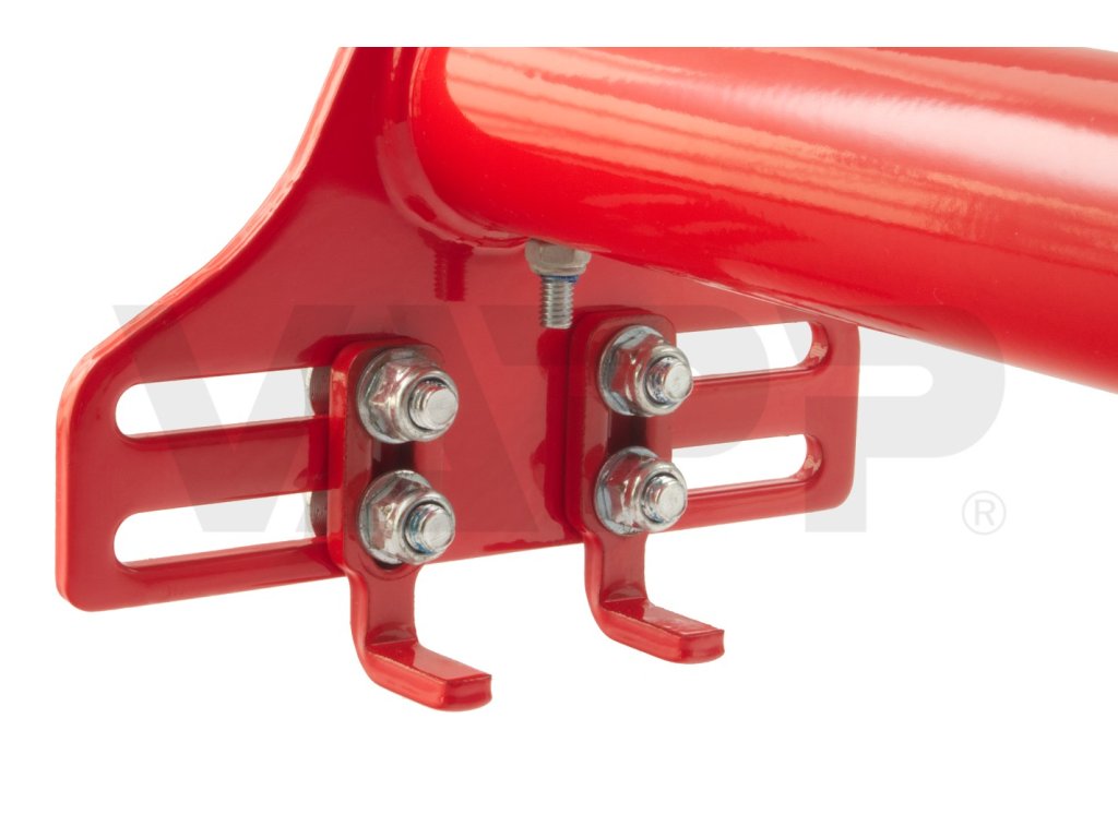 - Háčky pro zajištění jsou stavitelné i v podélném směru. Rozteč lze nastavit plynule od 48-136 mm, přes vnější okraje háčků je rozsah 58-148 mm.