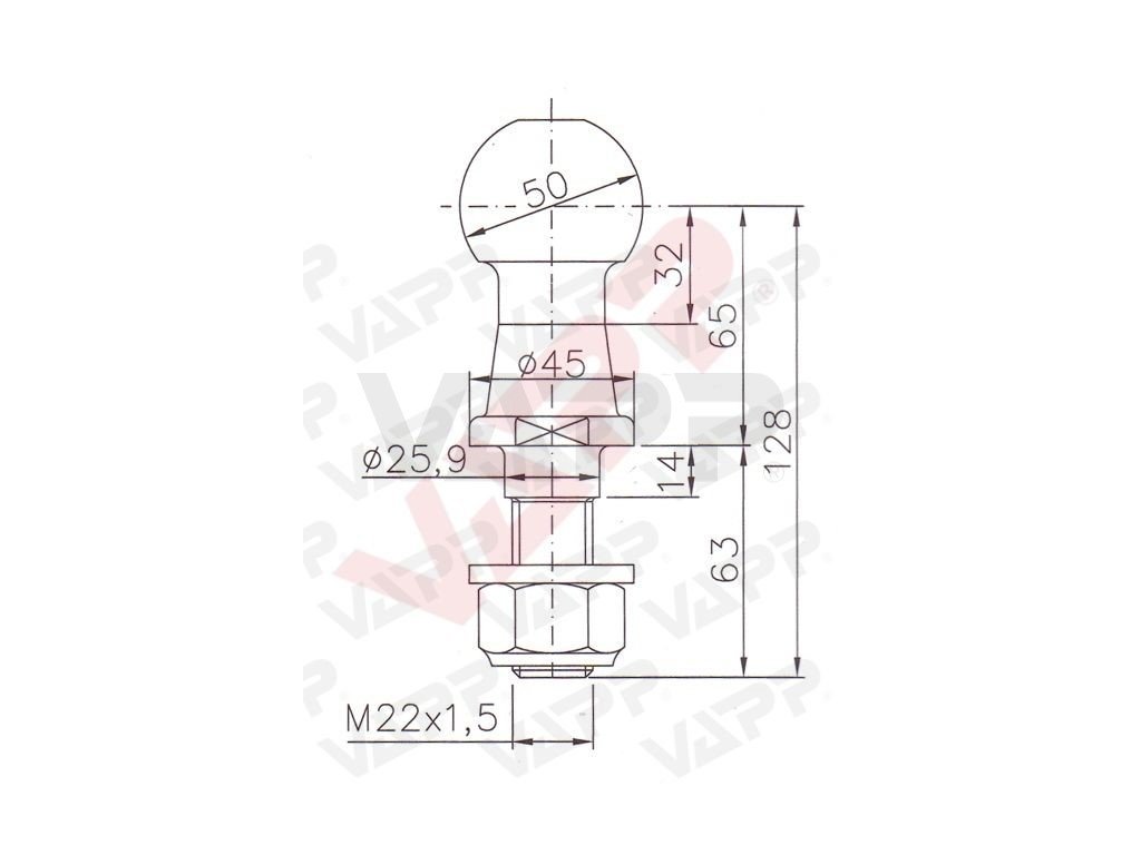 Koule ISO 50 WW KUB/50, pr. 50 mm, 3500 kg, M22x1,5