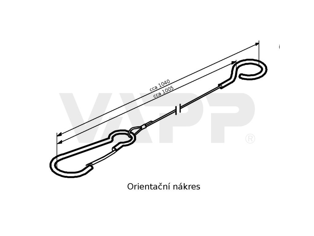 Originální pojistné lanko pro nájezdové brzdy AL-KO 60S, 90S, 161S a 251S. Lanko je má délku 1005 mm a je opatřeno háčkem, který se provléká otvorem v páce ruční brzdy a následně se zajišťuje ohnutím pomocí velkých kleští.
