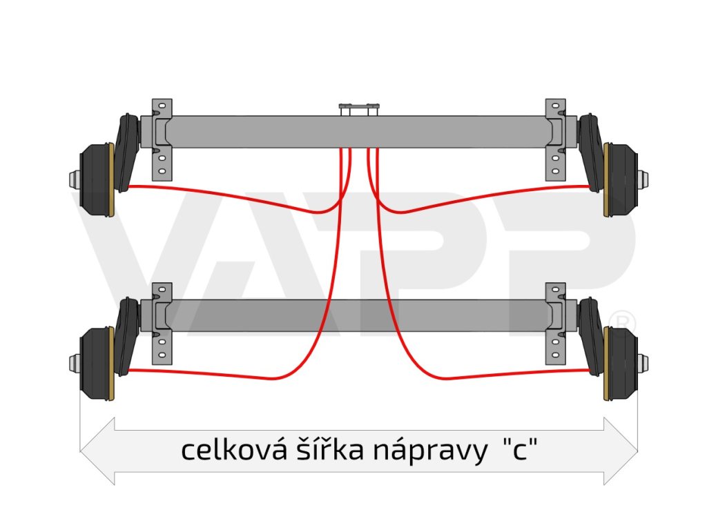 Při nestandardním rozvoru je nutné zohlednit větší vzdálenost náprav při výběru zadních lanovodů. Výrobce přívěsu může z konstrukčních důvodů osadit jiné než doporučené délky lanovodů.