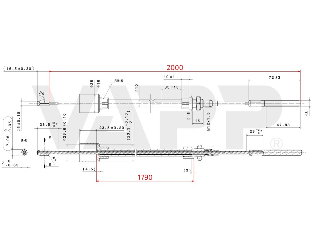 Označení na lanovodu HL1790 (délka bovdenu v mm)