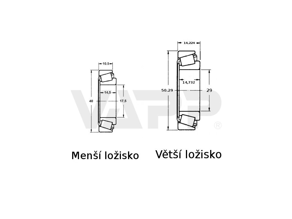 Sada kužel. ložisek + těsnicí kroužek (simering) Větší ložisko Simering: