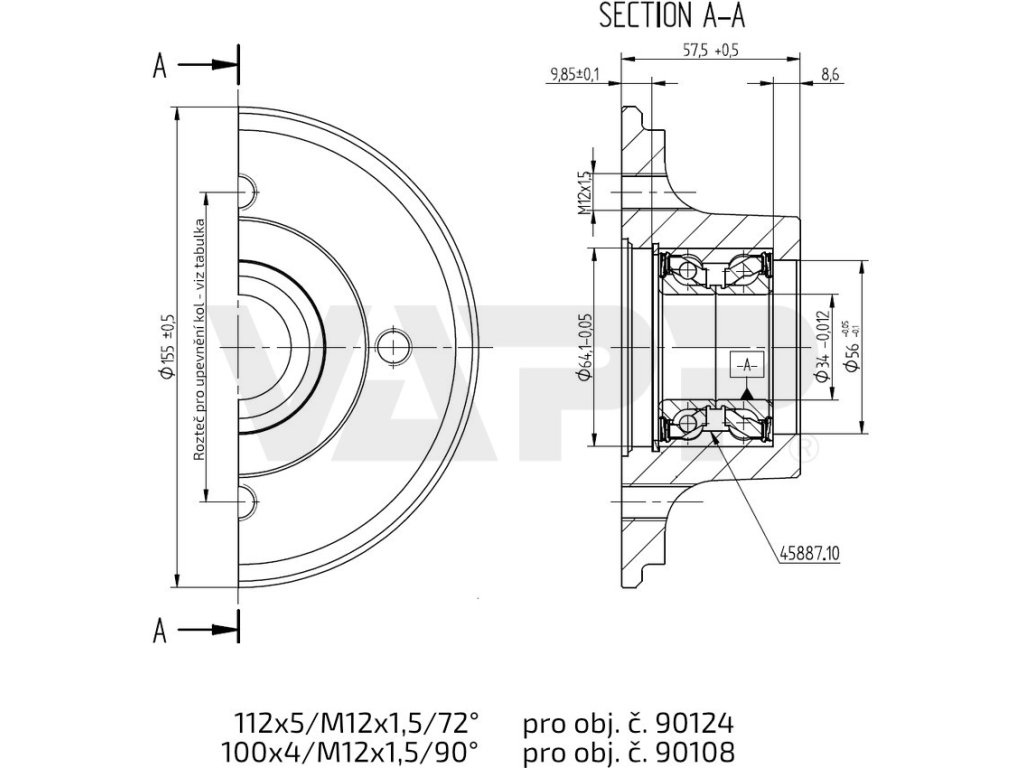 Náboj nebržděný KNOTT 112x5 L/LV vč. ložiska