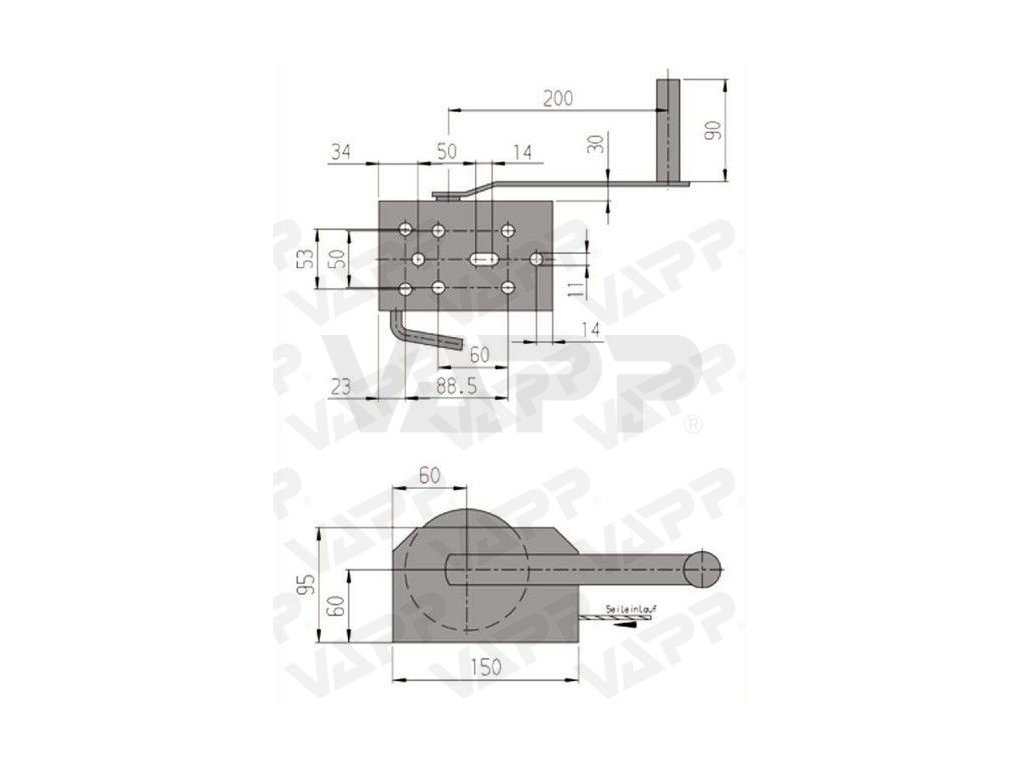 Jednoduchý naviják bez převodů, dodávaný včetně lana pr. 3,5 mm a délky 6 metrů. Ozubené kolo na cívce navijáku slouží k zajištění cívky proti otáčení jednduchou západkou, přitlačovanou pružinou. navíjení nepojízdného břemene 200 kg