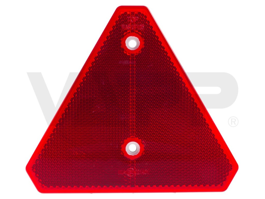 Běžný odrazový trojúhelník. Označení dvěma odrazovými trojúhelníky je povinné pro přívěsy a návěsy. Tento samostatný trojúhelník se hodí všude tam, kde nejsou použity sdružené zadní svítilny s integrovaným odrazovým trojúhelníkem. Tento typ má dva montážní otvory o průměru 5 mm v s roztečí 70 mm. Stejně jako všechny námi prodávané odrazky je tento trojúhelník homologován.