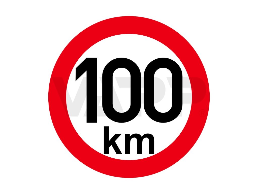 Samolepka průměr 150 mm s označením nejvyšší povolené rychlosti 100 km/h v provedení z retroreflexní fólie třídy 1 dle ČSN EN 12899-1, odpovídající platnému znění vyhlášky 153/2023 Sb. Vozidla kategorií M2, M3, N2, N3, O, R, S, C, T a Z s výjimkou čelně nesených strojů kategorie SN a jednonápravové traktory s přívěsy a speciální nosiče pracovních adaptérů musí být vybavena na zádi karoserie, a to pokud to konstrukce vozidla dovoluje, v levé polovině označením nejvyšší povolené rychlosti. 1. Vozidla kategorií M2, M3, N2, N3, O, R, S, C, T a Z s výjimkou čelně nesených strojů kategorie SN a jednonápravové traktory s přívěsy a speciální nosiče pracovních adaptérů musí být vybavena na zádi karoserie, a to pokud to konstrukce vozidla dovoluje, v levé polovině označením nejvyšší povolené rychlosti zaokrouhlené 2. Označení nejvyšší povolené rychlosti je v provedení kruh bílé barvy, který je lemován červenou barvou o vnějším průměru 200 mm; písmena v kruhu, pokud jsou použita, musí mít výšku "k" 35 mm, "m" 24 mm, číslice 75 až 80 mm, tloušťku čáry písmen 6 mm a číslic 12 mm. Barva nápisu je černá. Označení nejvyšší povolené rychlosti musí být vždy čitelné a při provozu nesmí být zakryto. Označení se vyžaduje z retro reflexního materiálu třídy 1 podle ČSN EN 12899-1, tedy červená a bílá, písmena a číslice jsou nereflexní. Retroreflexní materiál se nevyžaduje u vozidel, u kterých je provoz za snížené viditelnosti zakázán, u zvláštních vozidel a nesených strojů. 3. Není-li možno u přípojných vozidel kategorie O1, O2, R, vozidel kategorie S, jednonápravových traktorů s přívěsem a speciálních nosičů pracovních adaptérů umístit označení o průměru 200 mm, je přípustné použít označení o vnějším průměru 150 mm; potom písmena v kruhu, pokud jsou použita, musí mít výšku "k" 20 mm, "m" 14 mm, číslice 75 až 80 mm, tloušťka čáry je u písmen 3,5 mm a u číslic 12 mm. Pozor, tato samolepka nesplňuje požadavky Nařízení vlády Slovenské republiky č. 349/2009, proto není vhodná k použití na Slovensku.Výňatek z vyhlášky 153/2023 Sb. (Příloha 7, písmeno G):