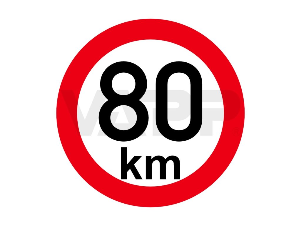 Samolepka průměr 150 mm s označením nejvyšší povolené rychlosti 80 km/h v provedení z retroreflexní fólie třídy 1 dle ČSN EN 12899-1, odpovídající platnému znění vyhlášky 153/2023 Sb. Vozidla kategorií M2, M3, N2, N3, O, R, S, C, T a Z s výjimkou čelně nesených strojů kategorie SN a jednonápravové traktory s přívěsy a speciální nosiče pracovních adaptérů musí být vybavena na zádi karoserie, a to pokud to konstrukce vozidla dovoluje, v levé polovině označením nejvyšší povolené rychlosti. 1. Vozidla kategorií M2, M3, N2, N3, O, R, S, C, T a Z s výjimkou čelně nesených strojů kategorie SN a jednonápravové traktory s přívěsy a speciální nosiče pracovních adaptérů musí být vybavena na zádi karoserie, a to pokud to konstrukce vozidla dovoluje, v levé polovině označením nejvyšší povolené rychlosti zaokrouhlené 2. Označení nejvyšší povolené rychlosti je v provedení kruh bílé barvy, který je lemován červenou barvou o vnějším průměru 200 mm; písmena v kruhu, pokud jsou použita, musí mít výšku "k" 35 mm, "m" 24 mm, číslice 75 až 80 mm, tloušťku čáry písmen 6 mm a číslic 12 mm. Barva nápisu je černá. Označení nejvyšší povolené rychlosti musí být vždy čitelné a při provozu nesmí být zakryto. Označení se vyžaduje z retro reflexního materiálu třídy 1 podle ČSN EN 12899-1, tedy červená a bílá, písmena a číslice jsou nereflexní. Retroreflexní materiál se nevyžaduje u vozidel, u kterých je provoz za snížené viditelnosti zakázán, u zvláštních vozidel a nesených strojů. 3. Není-li možno u přípojných vozidel kategorie O1, O2, R, vozidel kategorie S, jednonápravových traktorů s přívěsem a speciálních nosičů pracovních adaptérů umístit označení o průměru 200 mm, je přípustné použít označení o vnějším průměru 150 mm; potom písmena v kruhu, pokud jsou použita, musí mít výšku "k" 20 mm, "m" 14 mm, číslice 75 až 80 mm, tloušťka čáry je u písmen 3,5 mm a u číslic 12 mm. Pozor, tato samolepka nesplňuje požadavky Nařízení vlády Slovenské republiky č. 349/2009, proto není vhodná k použití na Slovensku.Výňatek z vyhlášky 153/2023 Sb. (Příloha 7, písmeno G):