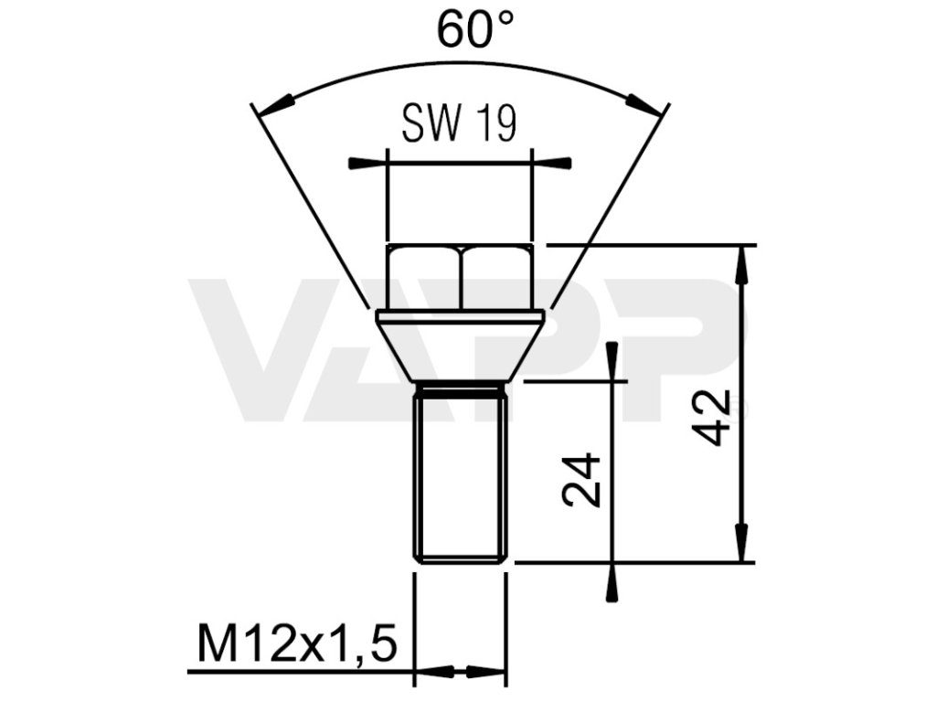 Šroub kolový M12x1,5x24 kuželový 8.8