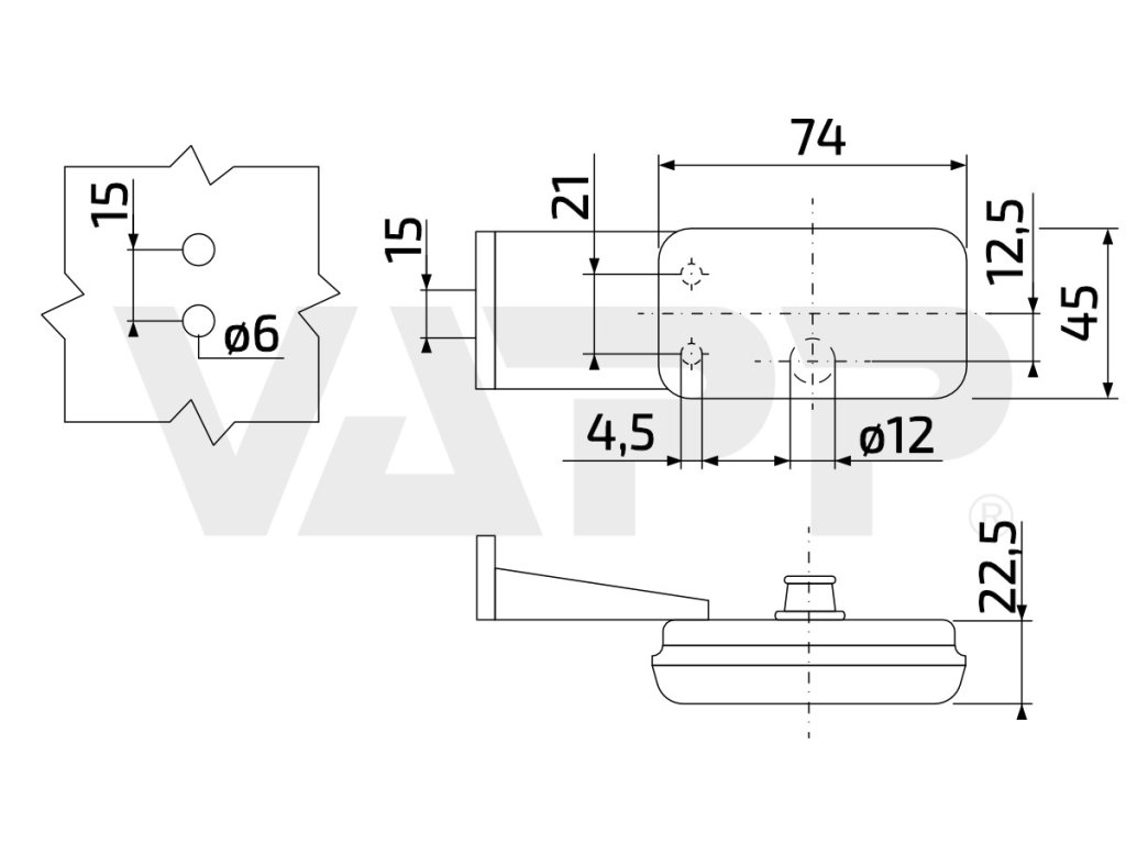 Svítilna přední obrysová Jokon PLR 130-WP, s odrazkou, držák, pravá