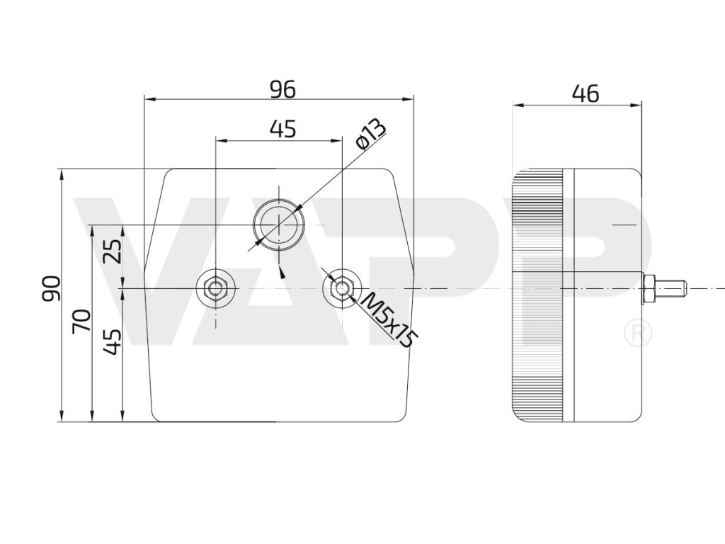 Osazení žárovkami: 2x P21W, 1x C5W, (žárovky nejsou součástí dodávky)