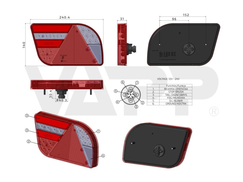 Svítilna VAPP GloTrac sdružená LED 12-24V, L-BL/BR/KO/CO/ML, baj6