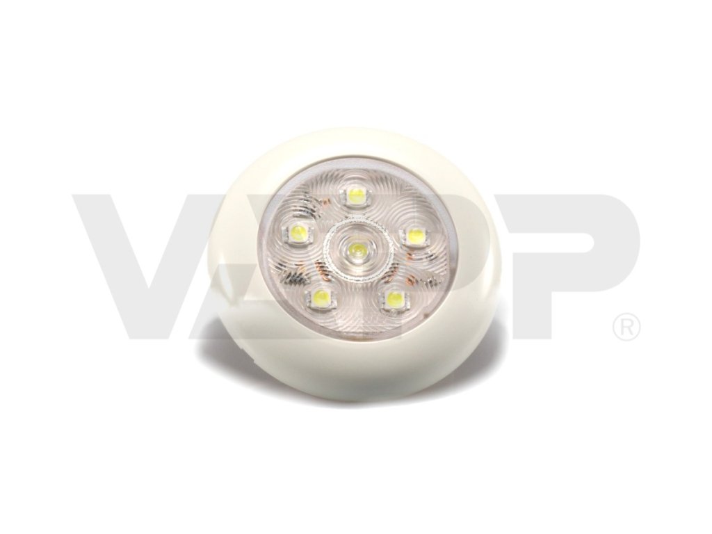 Praktická svítilna určená pro osvětlení interiéru přívěsů, dodávek apod. Díky kompaktním rozměrům nebude svítilna po montáži nikde překážet. Zdroj světla obstarává šest vysoce svítivých LED. Svítilnu připojenou ke zdroji energie rozsvítíte nebo zhasnete jednoduše dotekem prstu na světelné ploše. Otvory pro montáž jsou elegantně skryté pod nacvakávací ozdobnou krytkou, takže montážní šrouby nejsou vidět. Díky krytí IP67 je svítilna odolná vůči vodě a prachu. Za svítilny jsou vyvedeny dva vodiče pro připjení: červený (+) a bílý (kostra).