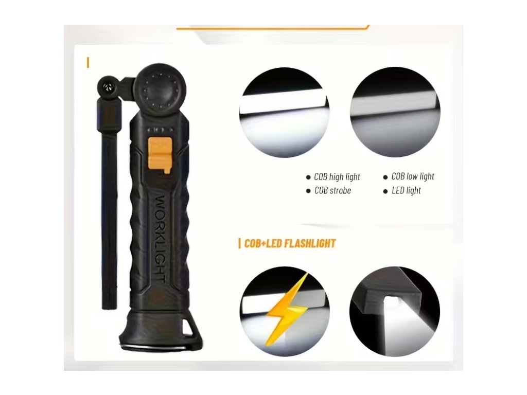 Výkonná Ruční LED Svítilna, 4 Režimy Mini COB Baterka, USB Nabíjecí.