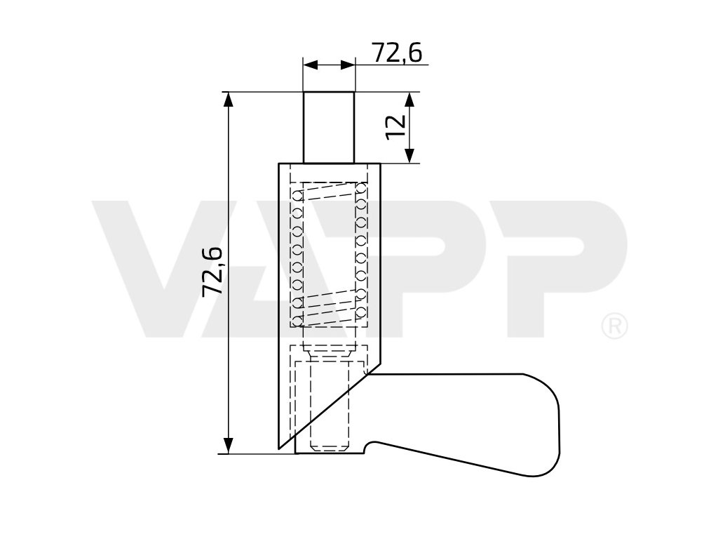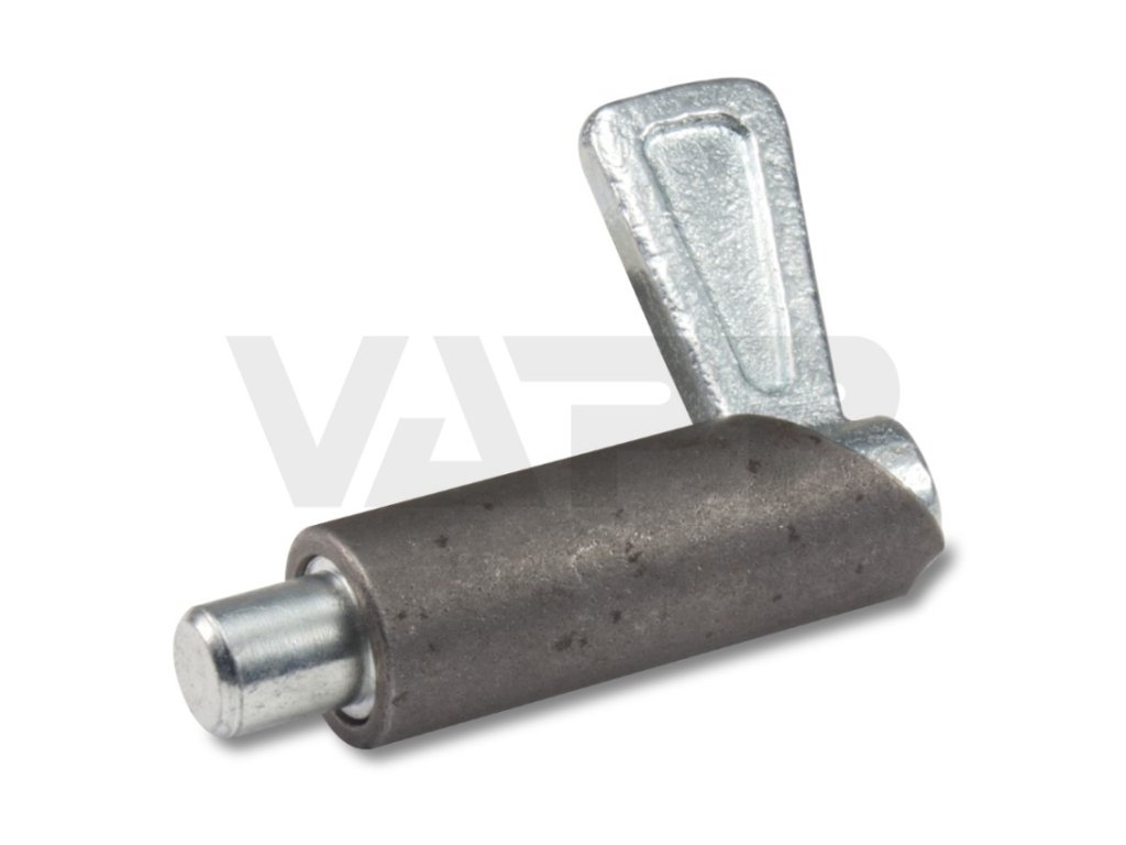 Zajišťovací kolík s pružinou lze využít k aretaci různých pohyblivých součástí. V uzavřeném stavu vyčnívá z trubkového pouzdra v přední části čep. Po zatažení za kličku směrem dozadu proti odporu pružiny se čep zasune do trubkového pouzdra. Po uvolnění kličky pružina čep opět vysune. Otočením kličky o půl otáčky ve vytaženém stavu lze kolík zaaretovat v otevřeném stavu. Povrchová úprava je provedena galvanickým pozinkováním. Hmotnost výrobku: 0,135 kg