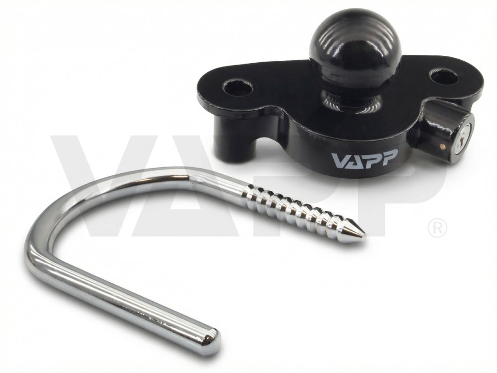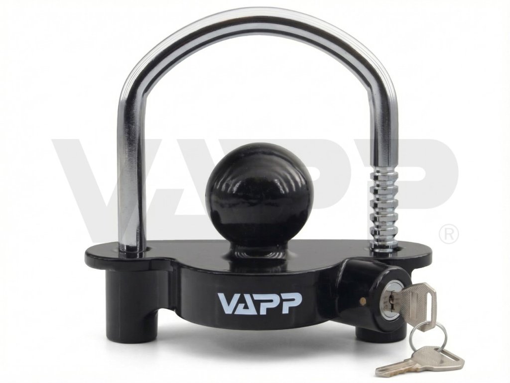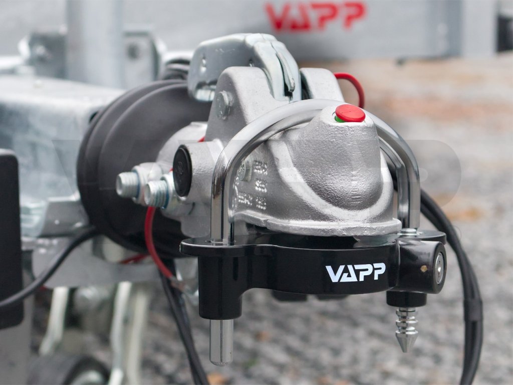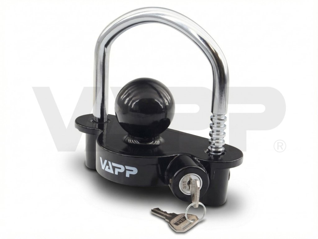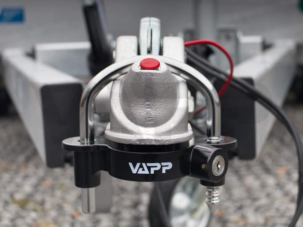 - Univerzální zámek VAPP UniLock pasuje do většiny běžných tažných spojek pro nebrzděné i brzděné přívěsy, případně lze použít i pro zamykání přívěsů s tažným okem.
