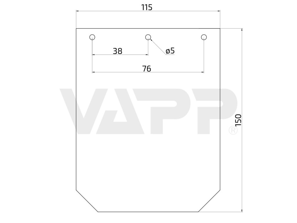- Šířka 115 mm, délka 150 mm, tloušťka 2 mm, rozměr vhodný pro blatníky na 8 palcová kola