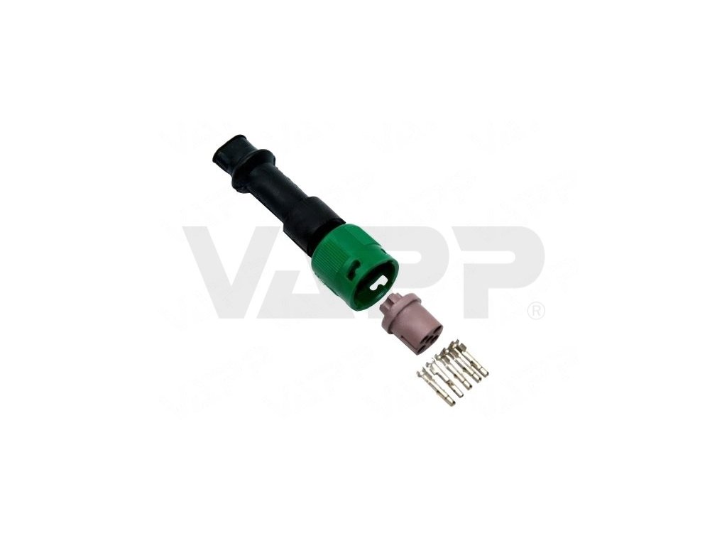 Zelený bajonetový konektor Jokon pro sdružené zadní svítilny s připojením na pět pinů. Tento konektor je určen pro svítilny Jokon, které mají připojení na 5-pinový bajonet. Rovněž je kompatibilní se svítilnami Lucidity a Fristom se stejným typem připojení. Provedení se dvěma vývody je primárně určené pro přívěsy, které jsou osazeny předními či bočními obrysovými světly. Jeden vývod se použije pro zavedení čtyřžilového nebo pětižilového kabelu do konektoru k napájední sdružené svítilny. Druhý vývod následně slouží pro vyvedení dvojžilového kabelu dále k dalším pozičním svítilnám. Zelený konektor je standardně používán na pravou sdruženou svítilnu. Žlutý se používá na levou.