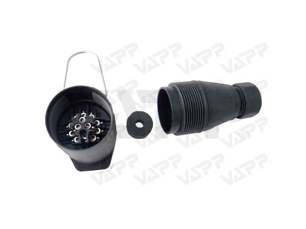Na rozdíl od běžných třináctipólových zásuvek pro montáž na podkladovou plochu (např. plech u tažného zařízení) je tato kabelová zásuvka určená pro montáž na volný konec kabelu bez nutnosti podkladové plochy. Hodí se tak např. k výrobě různých prodlužovacích kabelů a redukcí. Kvalitní niklované piny a houževnatý plast zajistí dobré spojení a dlouhou životnost zásuvky. Víčko s těsnícím kroužkem a pružinou ochrání kontakty před znečištěním. Praktické kovové očko u pantu víčka dobře poslouží k zavěšení zásuvky. Jednotlivé kontakty zásuvky jsou číslované, vodiče se připojují přitažením pod šroubek. K připojení tak není potřeba žádné speciální nářadí.