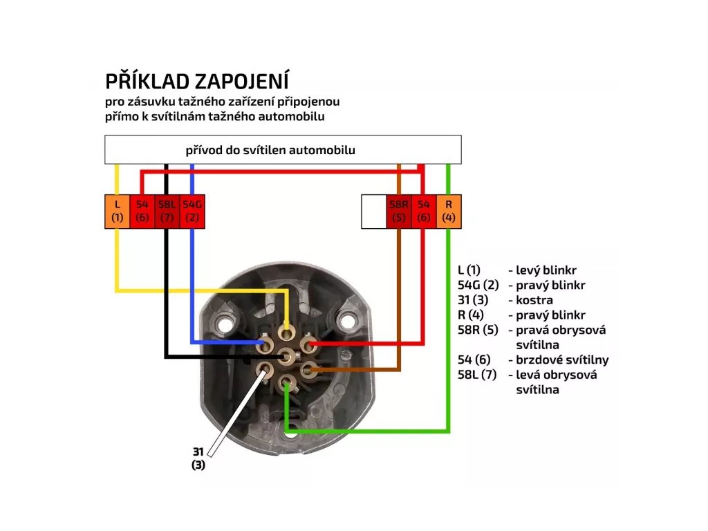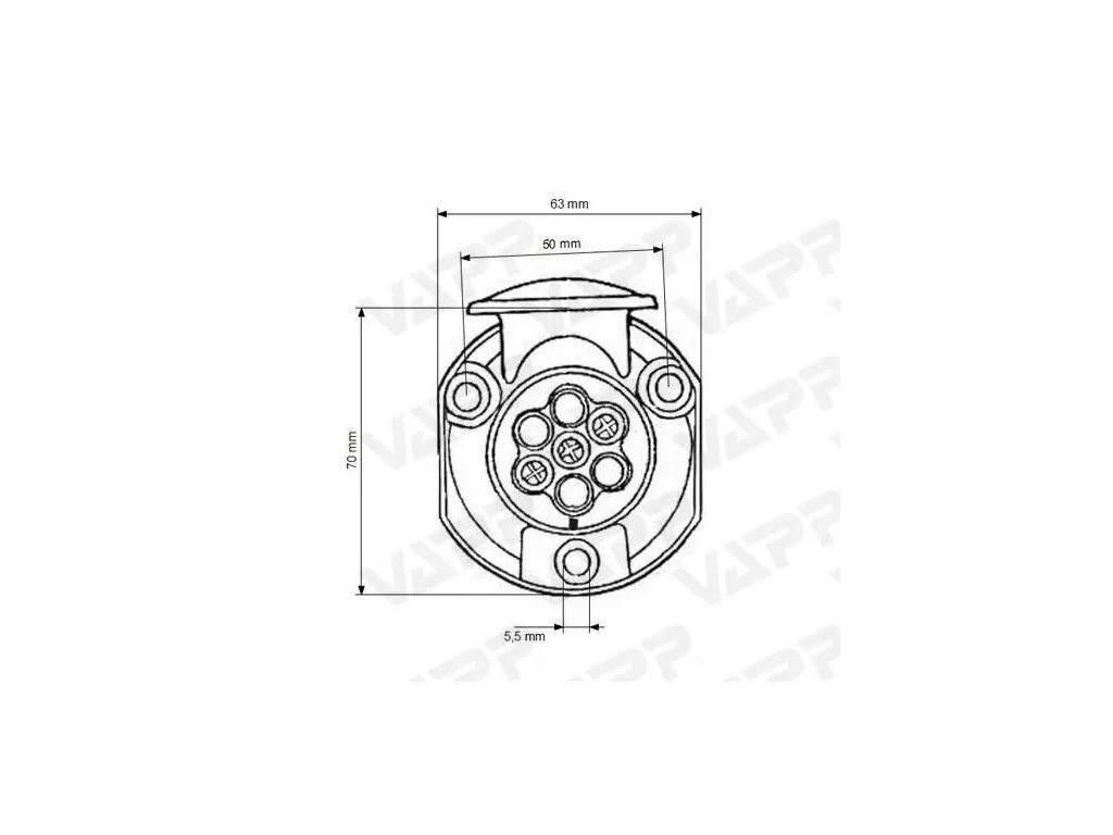 Zásuvka 7-pólová kovová. Univerzální hliníková zásuvka pro připojení přívěsu k elektrické síti vozidla.